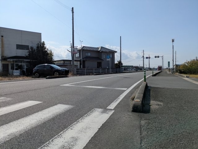 | 道路方向 | 北側:公道(建築基準法42条に準ずる道)幅員約3m 接面約32m、西側:農道 幅員約2.7m 接面約20m | 状況 | 上物あり(鉄骨造2階建 倉庫) | 交通アクセス | 伊予鉄「恵原公民館前」バス停 徒歩約3分 |